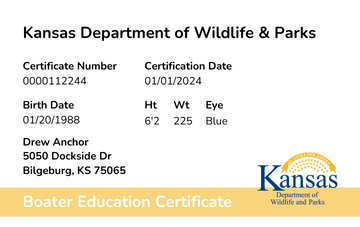 The Kansas Department of Wildlife & Parks encourages all boaters get the Boater Safety Education Certificate to stay familiar with Kansas laws and regulations.